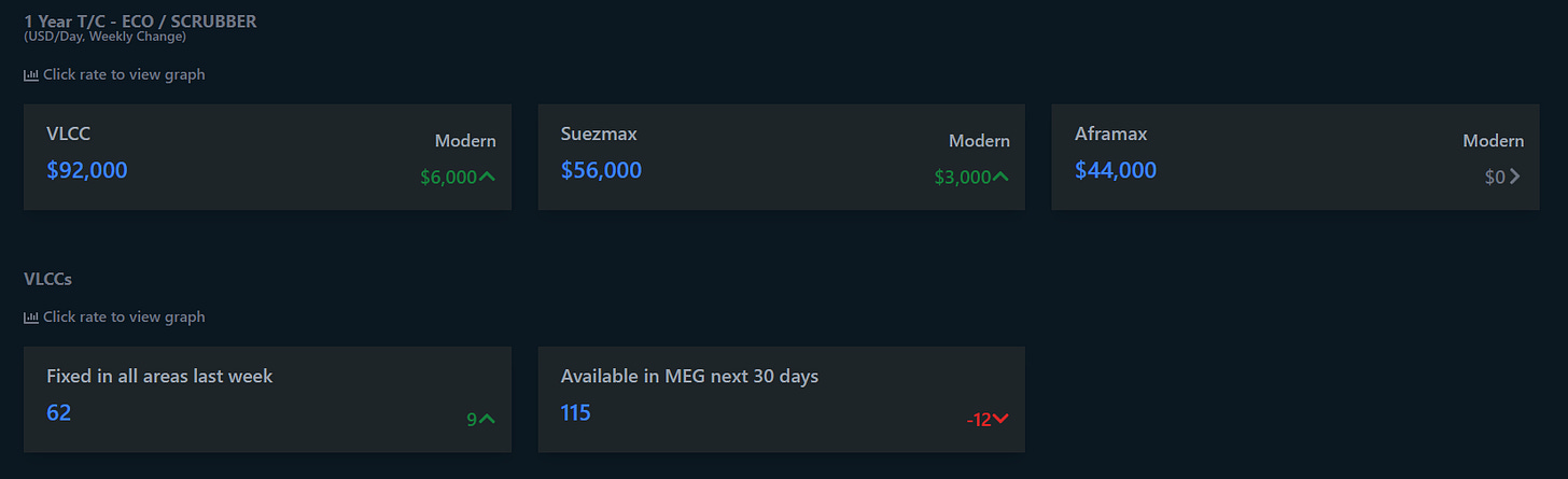 Currently fees per day are driven by “the long way around” Africa, fragmentation from the dark fleet, and availability. Just taking care of the last with more boats will seriously put fees to the downside. So what about the rest?